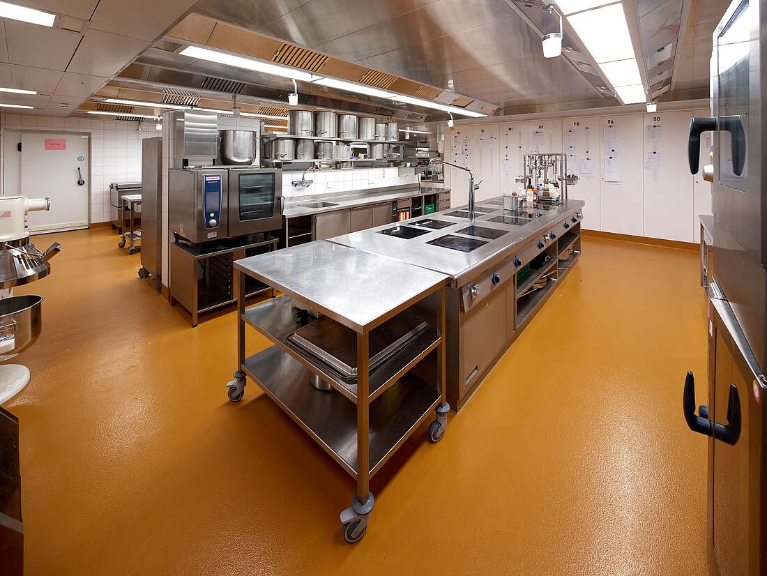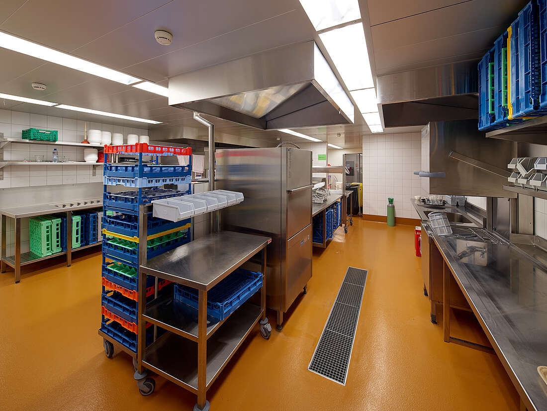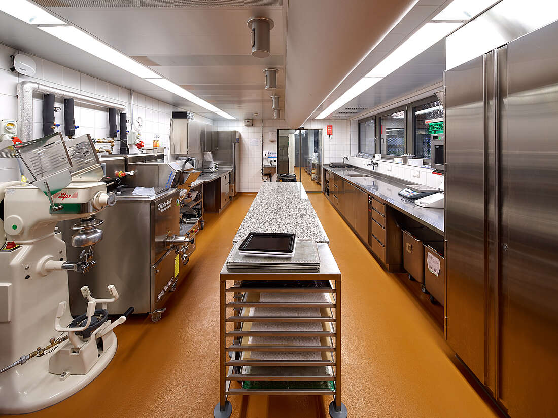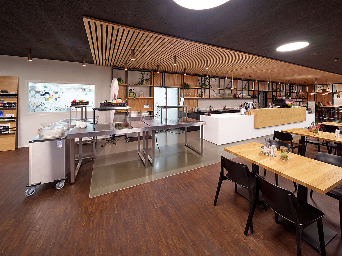 Im Wirtschaftspark Schoren in Thun steht seit 2017 der neue Firmensitz der Sozialfirma TRANSfair. Die neu eingebaute Produktionsküche ermöglicht psychisch beeinträchtigten Menschen einen sinnvollen, realitätsnahen und geschützten Arbeitsplatz. Unter diesem Fokus wurde eine grosszügige Produktionsküche mit tiefem Convenience Grad, eigener Patisserieproduktion und mit grosszügigen Arbeitsplätzen geplant. Die Küchenkapazität ist auf das hauseigene Restaurant mit 110 Sitzplätzen ausgelegt, auf dieverse externe Gastronomiebetriebe mit total 400 Mittagsmahlzeiten und auf verschiedenste Caterings bis zu 2000 PAX. Die Produktionsprozesse sind auf eine Cook and Chill-Produktionsmethode ausgerichtet, um die grossen Kapazitätsschwankungen aufnehmen zu können. Zum hauseigenen Restaurant gehört ein attraktives Getränkebuffet, das über den Mittag mit mobilen Warm- und Kaltbuffets ergänzt wird.