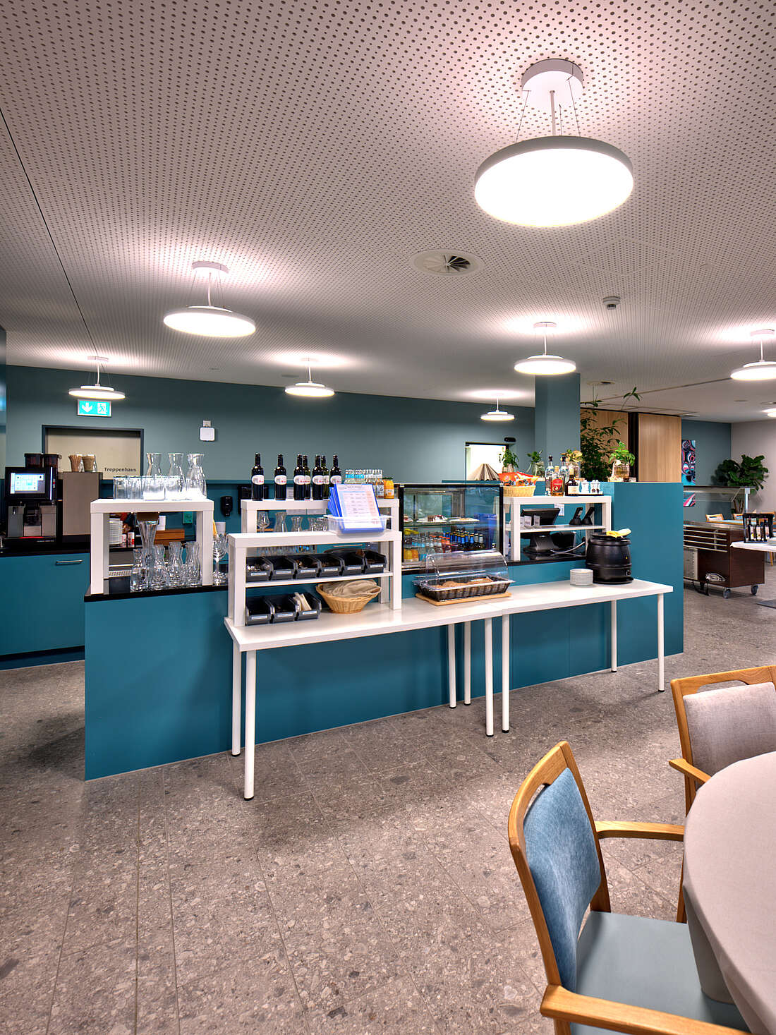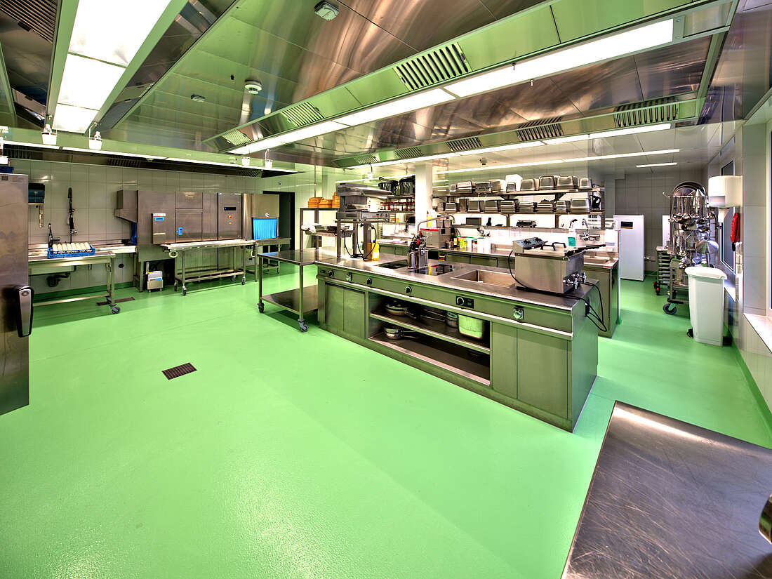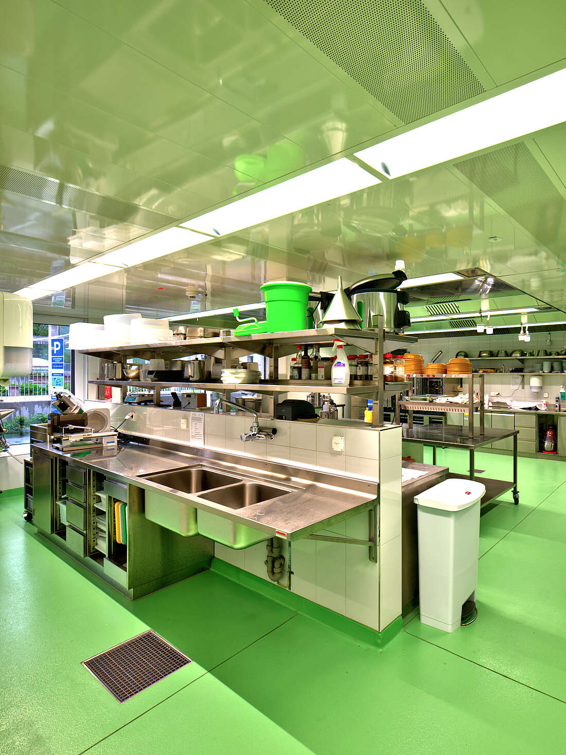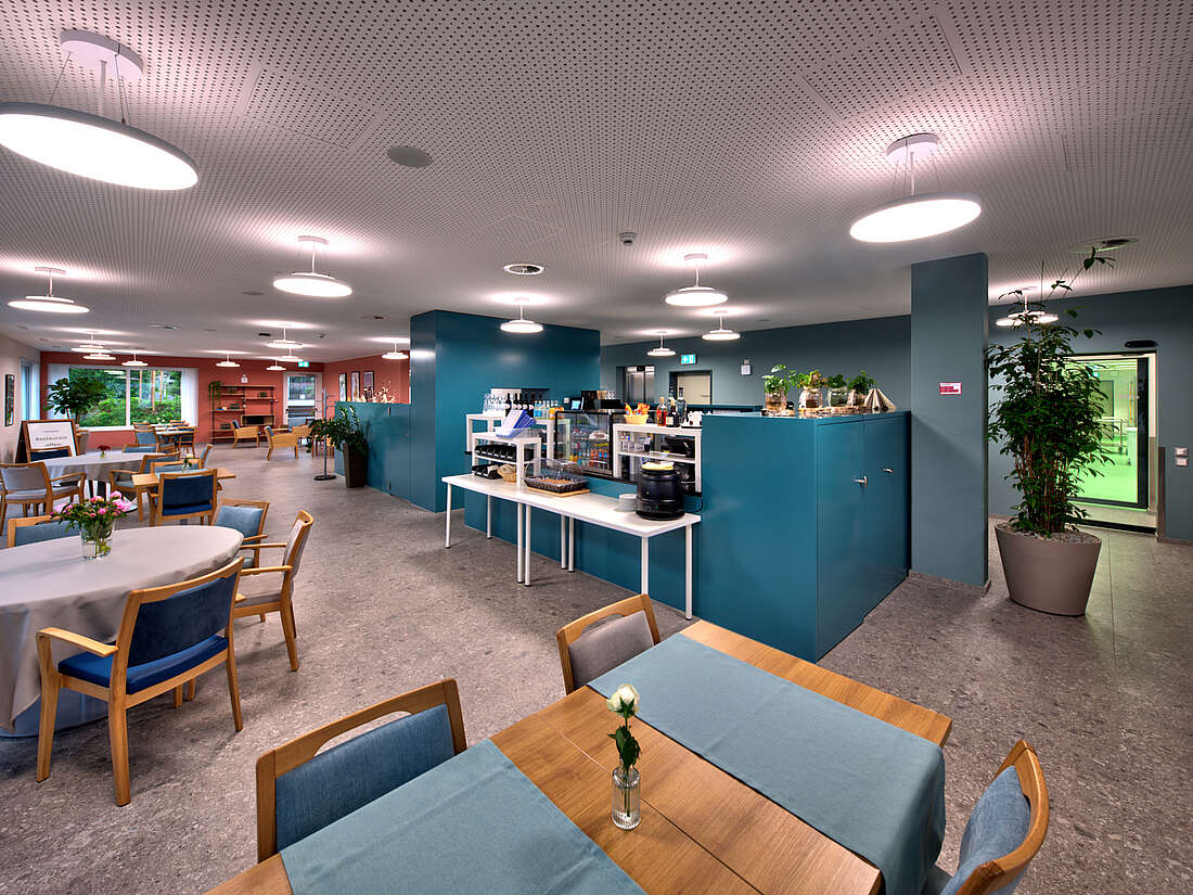 Die Küche ist mit modernster Technologie ausgestattet, die nicht nur energieeffizient und nachhaltig ist, sondern auch höchsten Komfort bietet. So werden täglich rund 80 Personen auf den Wohngruppen und im Bistro verpflegt. Das Bistro selbst beeindruckt mit einer zeitgemässen Buffetinfrastruktur, die den Gästen ein ansprechendes kulinarisches Erlebnis bietet.