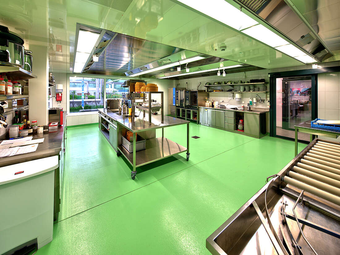 Ursprünglich als Produktionsküche geplant, wurde die Einrichtung zu einer effizienten Regenerationsküche umgestaltet. Die extern vorproduzierten Speisen werden in den Usego-Park geliefert, gekühlt zwischengelagert und regeneriert. Diese Mahlzeiten werden anschliessend in Speisentransportwagen auf die Wohngruppen verteilt und den Bewohnenden serviert.