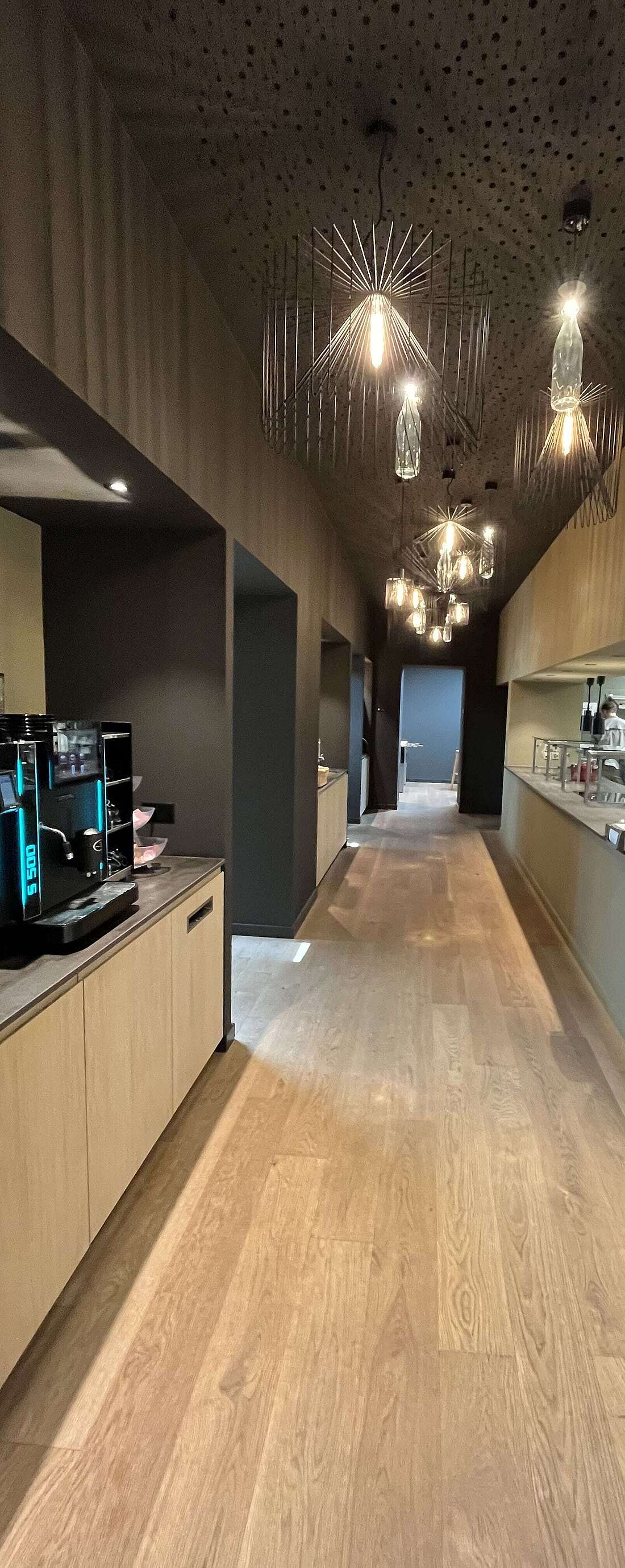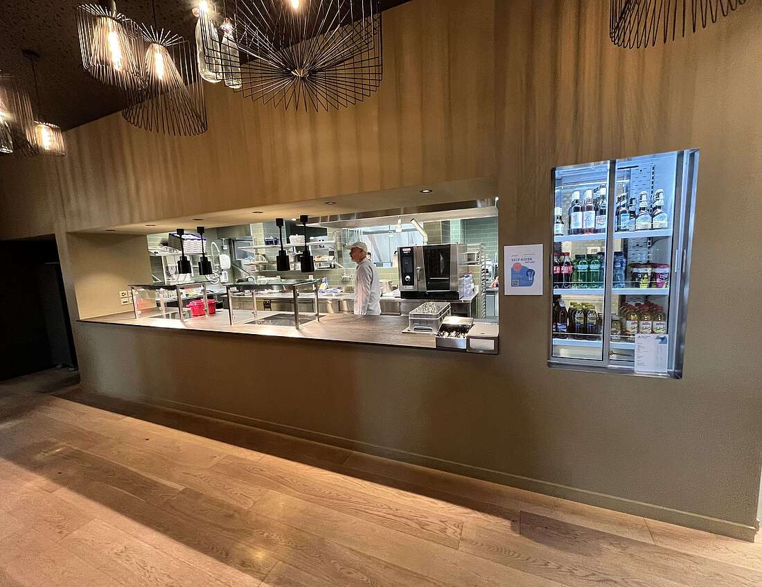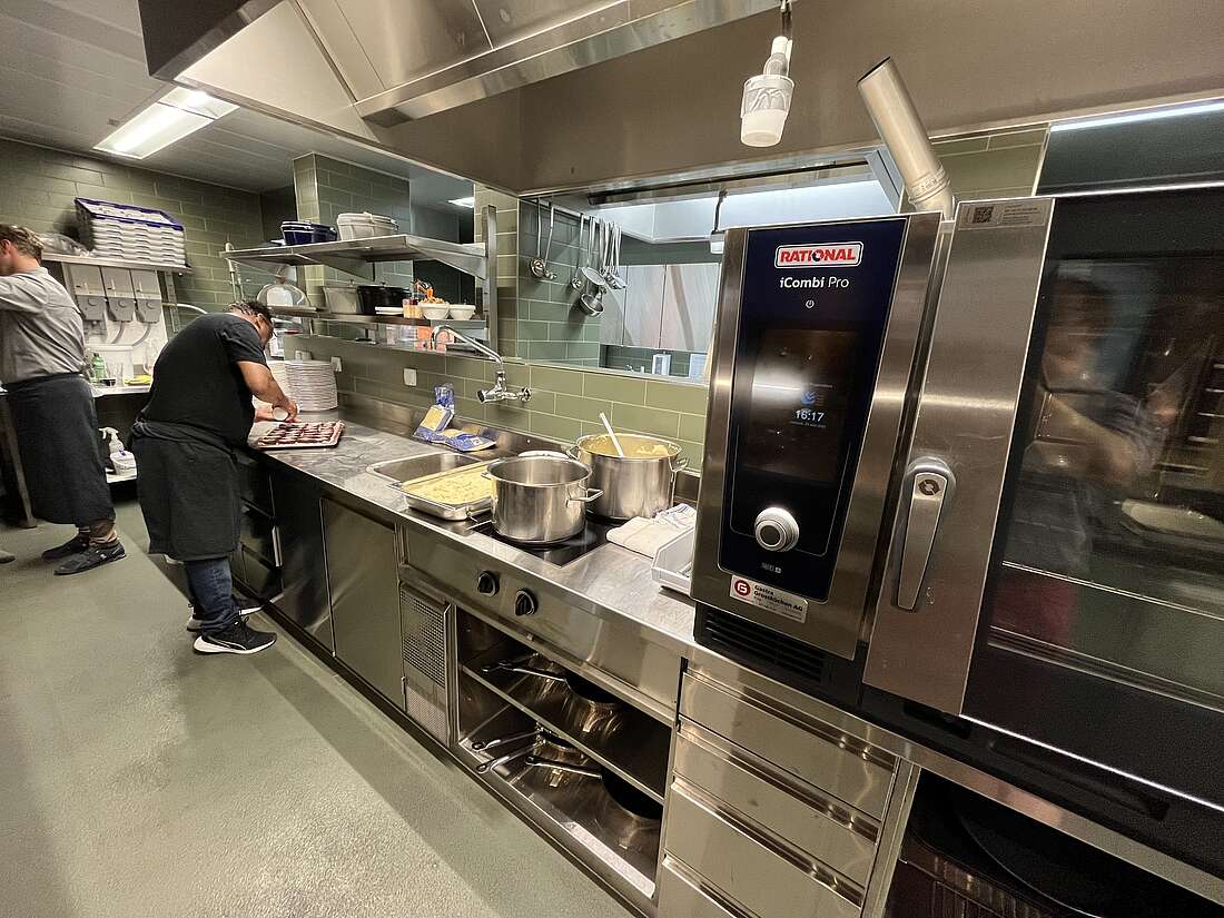 Die Küche und alle ihre Nebenräume wurden in den hinteren Teil des Gebäudes verlegt und neu eingerichtet. Der angrenzende neue Free Flow-Bereich ermöglicht einen flüssigen Service, ohne dass die sitzenden Gäste gestört werden.