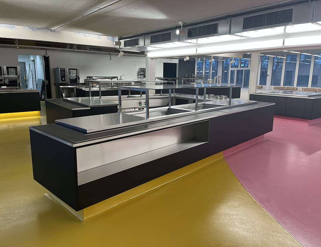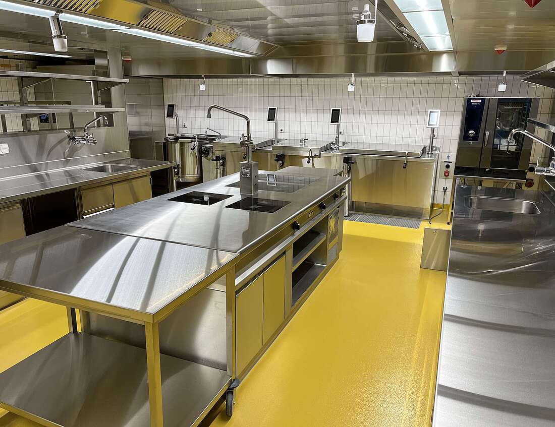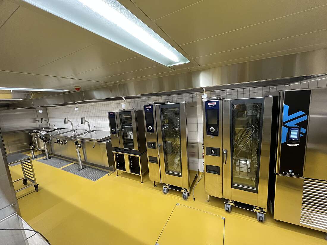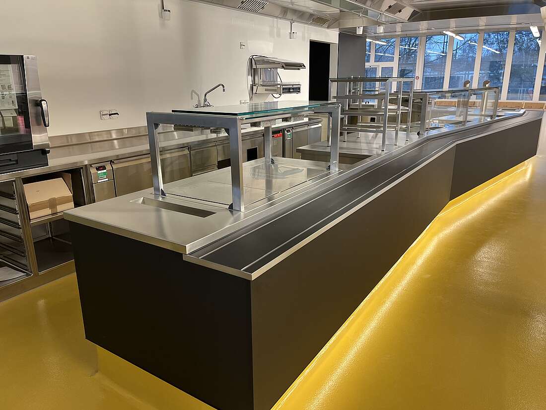 In der brandneuen Produktionsküche werden täglich bis zu 700 Mahlzeiten nach dem Cook and Chill-Verfahren zubereitet. Dank modernster Küchentechnik kann die Kapazität problemlos gesteigert und flexibel an den Bedarf angepasst werden. Zusätzlich zur Versorgung des hauseigenen Restaurants geht die Küche noch einen Schritt weiter und beliefert auch externe Blaulicht-Standorte. Das Restaurant selbst besticht mit einer großzügigen Free Flow-Anlage, die mit Selbstwahlbuffets, warmen Ausgaben sowie Frontcooking aufwartet. Darüber hinaus steht den Selbstversorgern und dem Piquet-Dienst ein eigener 24/7-Bereich zur Verfügung.