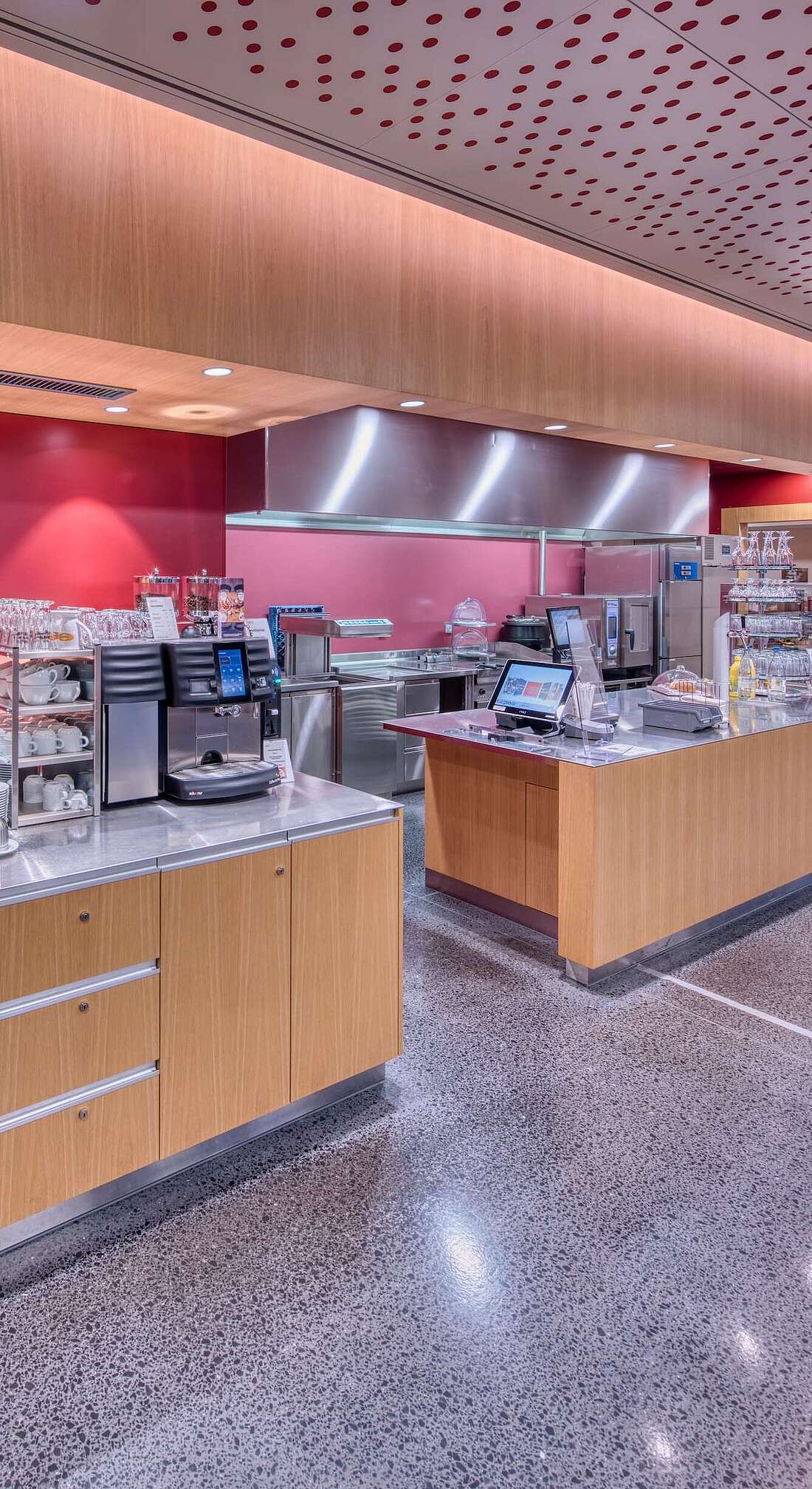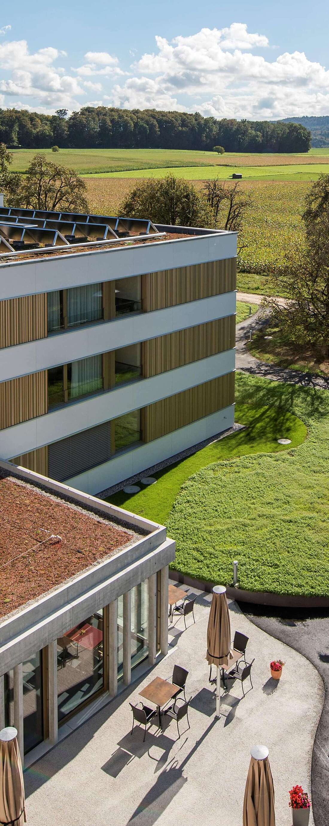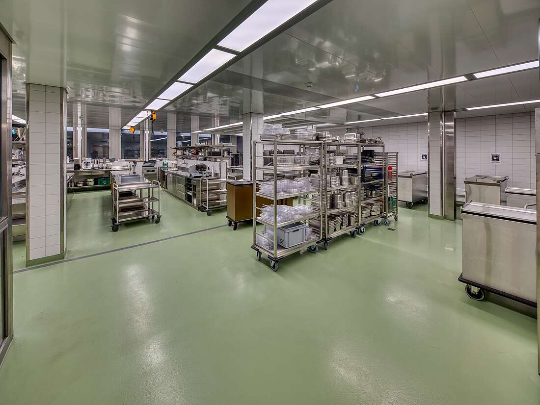 Die bestehende Küche (früher als Spitalküche genutzt) wurde den neuen Gegebenheiten angepasst und redimensioniert. Es entstand eine Produktionsküche mit neuster Infrastruktur und effizienten Arbeitsabläufen für die Herstellung von täglich etwa 100 Mittagsmahlzeiten. Im Neubau wurde ein öffentlich zugängliches Restaurant mit einer Fertigungsküche inklusive Abwäscherei und klassischer Selbstbedienungsanlage geplant und realisiert.