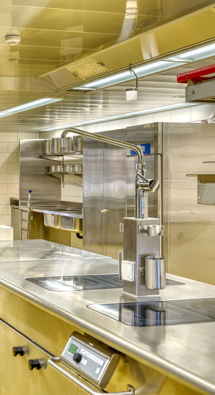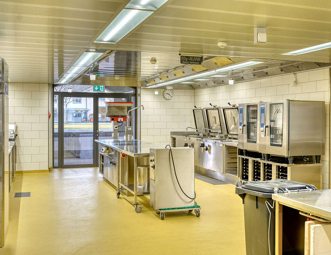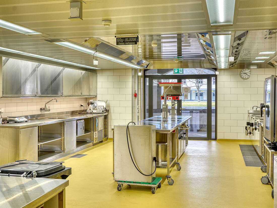 Das Ausbildungszentrum Verpflegung in Thun fungiert als zentrale Ausbildungsstätte der Armee und bildet jährlich etwa 600 Truppenköche in den neu errichteten 4 Küchen aus. Jede dieser Küchen wurde mit identischer Ausstattung versehen, bestehend aus verschiedenen Gerätefabrikaten, die in der Schweizer Armee verwendet werden. Durch die Sanierung wurde der Zugang zu den Küchen und dem Verpflegungsbereich vereinfacht. Hierbei wurde das Geschoss niveaugleich gestaltet, um einen barrierefreien Zugang ohne Stufen zu ermöglichen. Gleichzeitig wurden die Lagerflächen an die zukünftigen Bedürfnisse angepasst. Während der Bauzeit (2018-2021) wurde ein Küchenprovisorium mit Lagercontainer sowie ein Verpflegungsbereich in einer angrenzenden Baracke geplant.