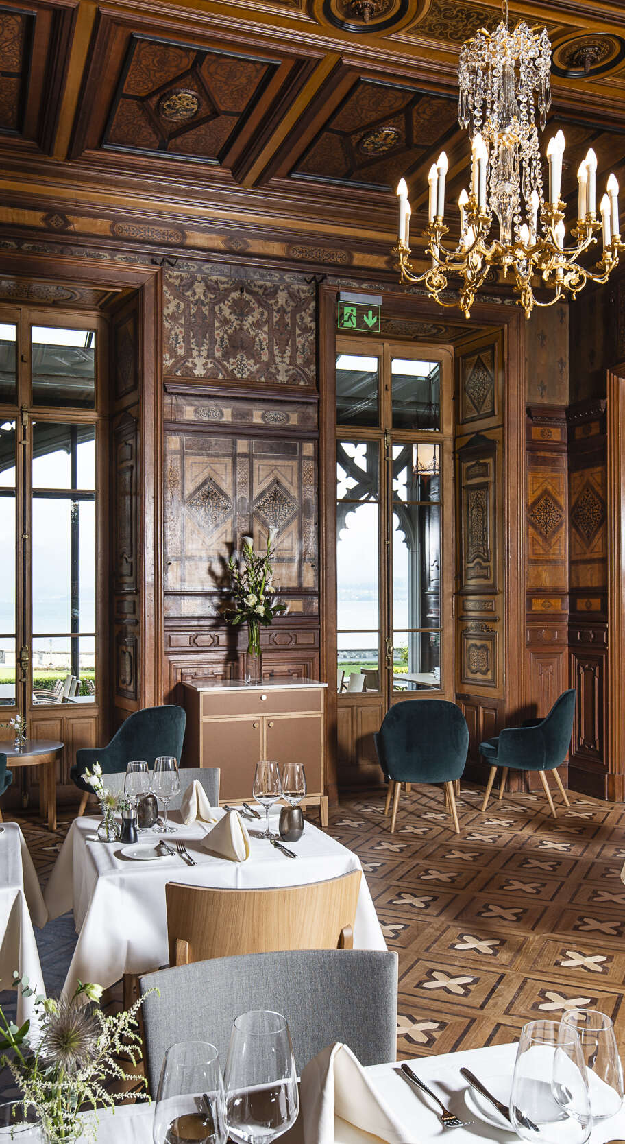 Das zwischen 1847 und 1852 erbaute Schloss Schadau in Thun gehört zu den bedeutendsten Schlossbauten der Romantik in neugotischen Stil. Die Stadt Thun, als Eigentümerin des Schlosses, hat das historische Gebäude im Rahmen einer Gesamtsanierung zu einem Restaurant- und Hotelbetrieb umgenutzt. Der Einbau einer Bankett- und À-la-carte-Küche, unter Berücksichtigung der geschützten Bausubstanz, erforderte höchste Sorgfalt und Kompromissbereitschaft, um einen funktionierenden Gastrobetrieb zu ermöglichen, aber auch den Wert des Gebäudes als Baudenkmal zu erhalten. Entstanden ist ein Bijou an atemberaubender Lage mit Blick auf den Thunersee und die Alpen.